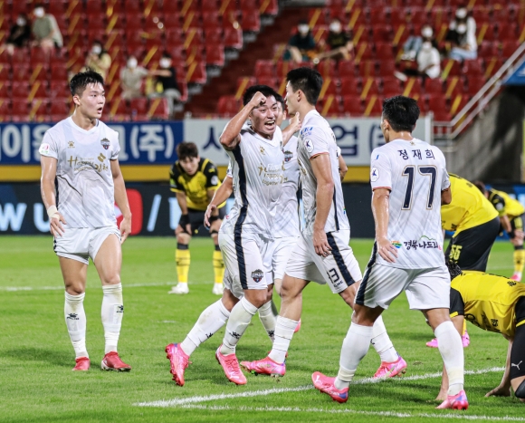 김천은 4-3-3 포메이션을 꺼내 들었다. 허용준-박동진-조규성이 1선을 맡았고 서진수-정현철-문지환이 미드필드 진을 꾸렸다. 유인수-박지수-우주성-김용환이 포백을 책임졌고 골문은 구성윤이 지켰다.