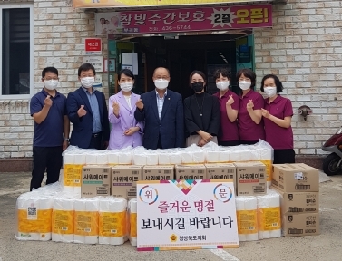 | 박판수 경상북도의원(국민의힘, 김천)은 9월 13일(월) 민족 대명절인 추석을 앞두고 김천시 부곡동에 위치한 참빛종합실버센터(센터장 조경실)를 방문해 따듯한 나눔의 정을 나눴다.