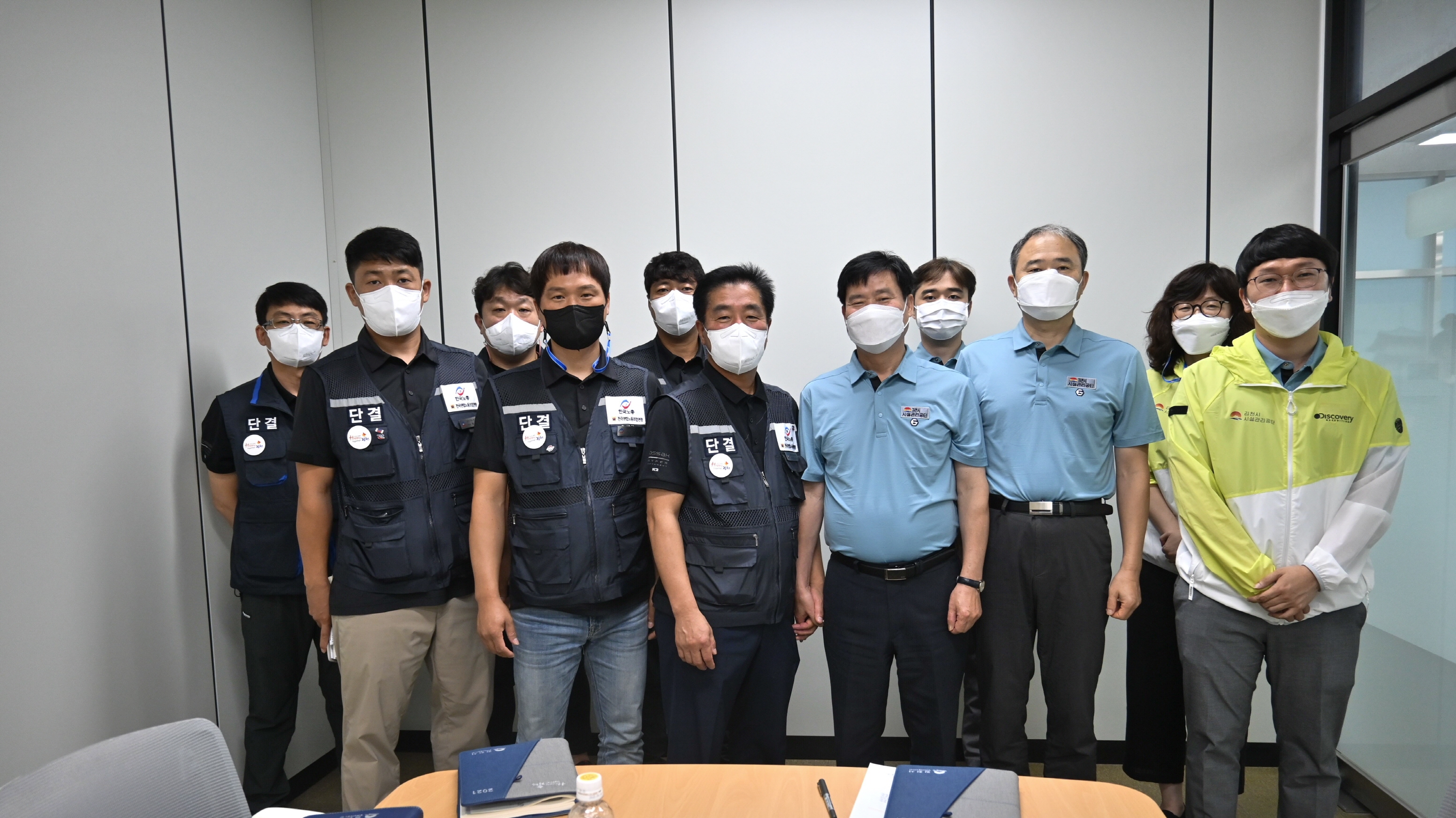 이 자리에서 양측은 김천시에서 함께 성장하는 동반자라는 점에 공감하며 김천시와 김천시 공무직노조 간 협약 내용을 존중하여 앞으로의 교섭에 임할 것이라 밝혔다. 김재광 이사장은 “노사간 상생하여 발전해가기 위해서는 화합이 필수적이라 생각한다. 최대한 노조 입장을 존중하여 협상이 진행되도록 노력하겠다”고 말했다. 이준식 위원장은 “이사장님을 비롯한 공단 임직원들이 근로자에 대한 존중과 배려를 보여주셔서 감사하다. 공단 출범 이후 첫 번째 단체교섭도 상호 존중을 통해 원활한 협상이 되었으면 한다”고 답했다.