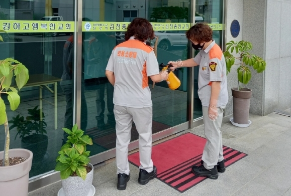 방역 활동에는 최옥순 김천여성의용소방대장을 포함한 의용소방대원 15여명이 사회적 거리두기를 준수해 2인 1조로 참여했다.