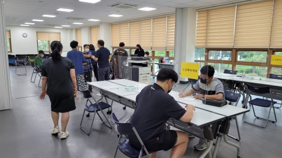 한편 율곡동행정복지센터에서는 코로나 상생 국민지원금 신청률 제고를 위해 관내 전체 아파트 출입문에 현수막 및 안내문을 게첨하고 안내방송을 실시하였으며 대상자가 많을 것으로 예상되는 천년나무 4단지에 거점 접수처를 운영하는 한편 현장접수 주민이 불편함이 없도록 율곡동장을 반장을 하는 12명으로 TF팀을 구성하여 행정복지센터 2층에 전용 접수창구 운영하고 거동이 불편한 가정에는 찾아가는 신청 접수 서비스를 제공하고 있다. |
