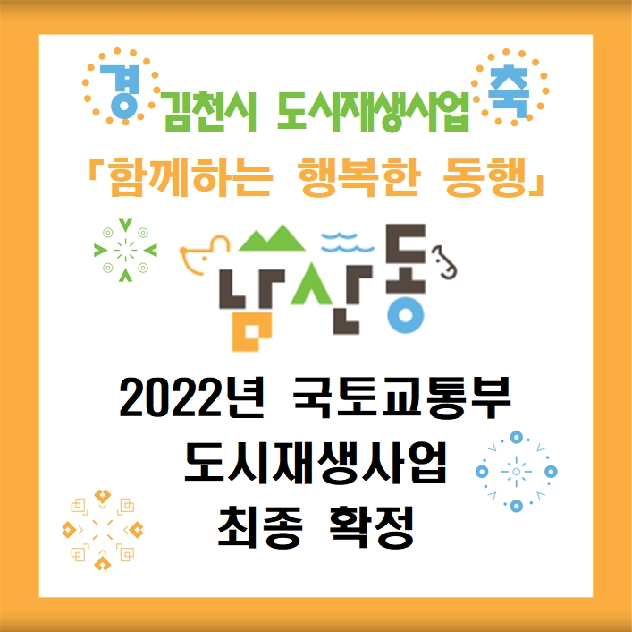 이번에 선정된 김천시 도시재생사업은 남산지구 일대 110,000㎡부지에 총 사업비 142억원을 투입하여 「함께하는 행복한 동행 남산동」을 주제로 3개 단위사업 6개 세부사업인 ▲마을단위 통합치료 및 돌봄서비스 제공 ▲노후주택을 대상으로 집수리지원사업, 빈집정비사업 등 주거환경개선 ▲주거지 내 여가쉼터 및 안전한 보행로 조성 등 생활인프라 정비로 2022년부터 사업이 본격적으로 추진된다.