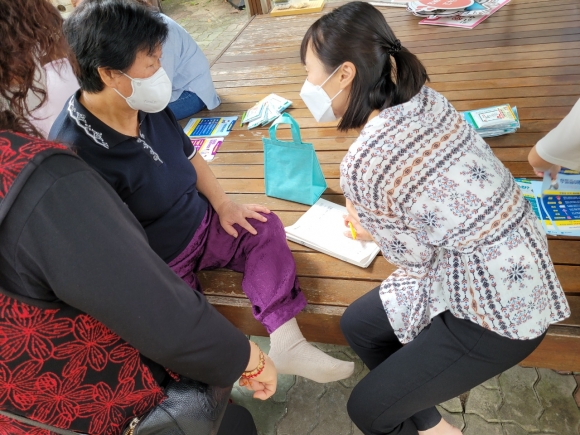 행사 시작전 방송 및 안내문게시를 통하여 입주민들에게 고지하고 소정의 선물 (마스크,물티슈,손소독제)나눔과 함께 우울증,치매,건강관리 등 여러 가지 검진을 통한 행사를 진행했다.