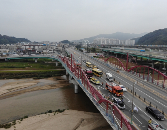 지난 10월 6일(수) 09시 경 김천대교에서 차량 내부에 화재가 나타났다는 신고가 들어왔다. 출동한 대원들은 신호가 없는 교량에서의 화재현장이라 2차사고가 발생할 수 있는 상황이었다.