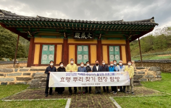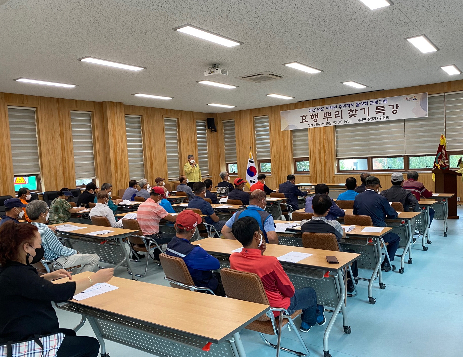 | 지례면 주민자치위원회(회장 문창곤)는 지난 10.7(목)에 코로나19 3단계 방역지침을 준수하면서 2021년도 주민자치위원회 활성화 프로그램의 일환으로 향토사학자 문재원 선생님을 초청해 ‘효행 뿌리 찾기’특강을 실시했다.