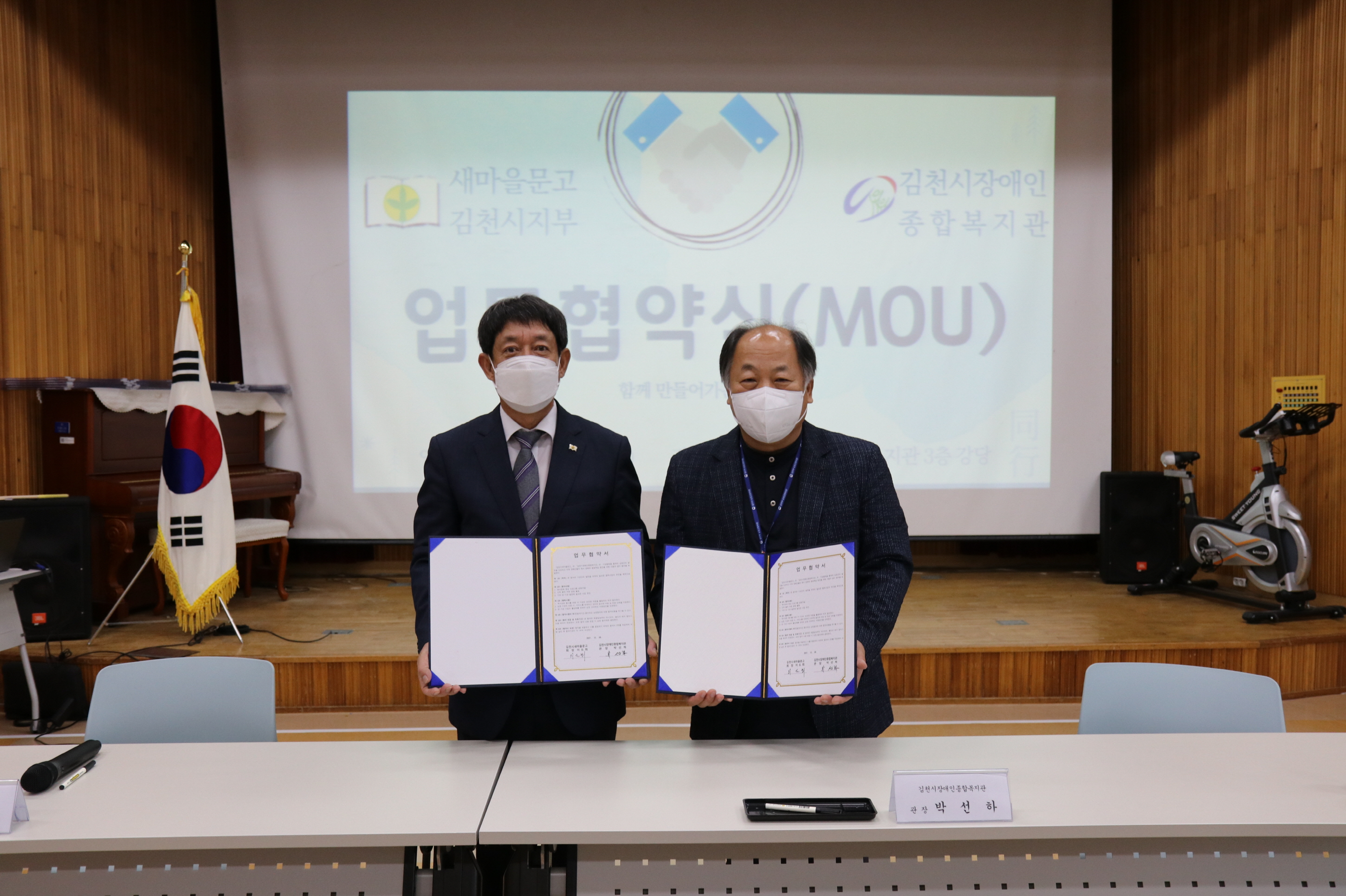 | 김천시장애인종합복지관(관장 박선하)은 새마을문고 김천시지부(이도희)와 8일 MOU를 체결했다.