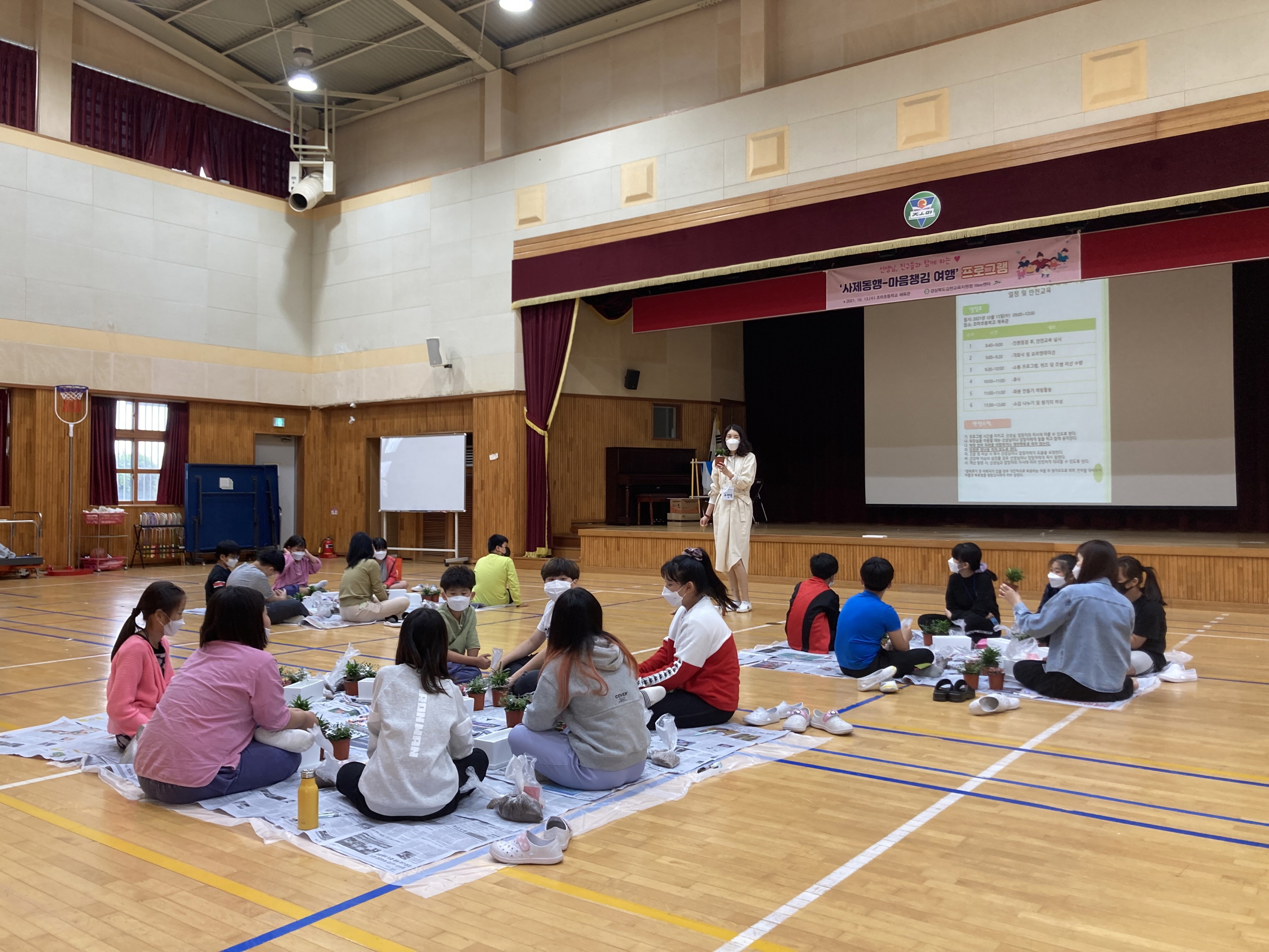 | 경상북도김천교육지원청(교육장 박삼봉) Wee센터는 10월 13일(수) 조마초등학교 체육관에서 조마초등학교 3·4·5학년 학생 20명과 담임교사 3명을 대상으로 ‘사제동행-마음챙김 여행’ 프로그램을 운영하였다.