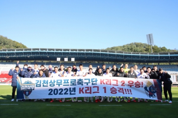 |  | | | ⓒ 김천내일신문 | | 김천이 부천 원정에서 조규성의 결승골에 힘입어 부천에 1대 0으로 승리했다. 승점 3점을 쌓은 김천은 남은 두 경기 결과와 무관하게 K리그2 우승, K리그1 직행 승격을 확정지었다.
