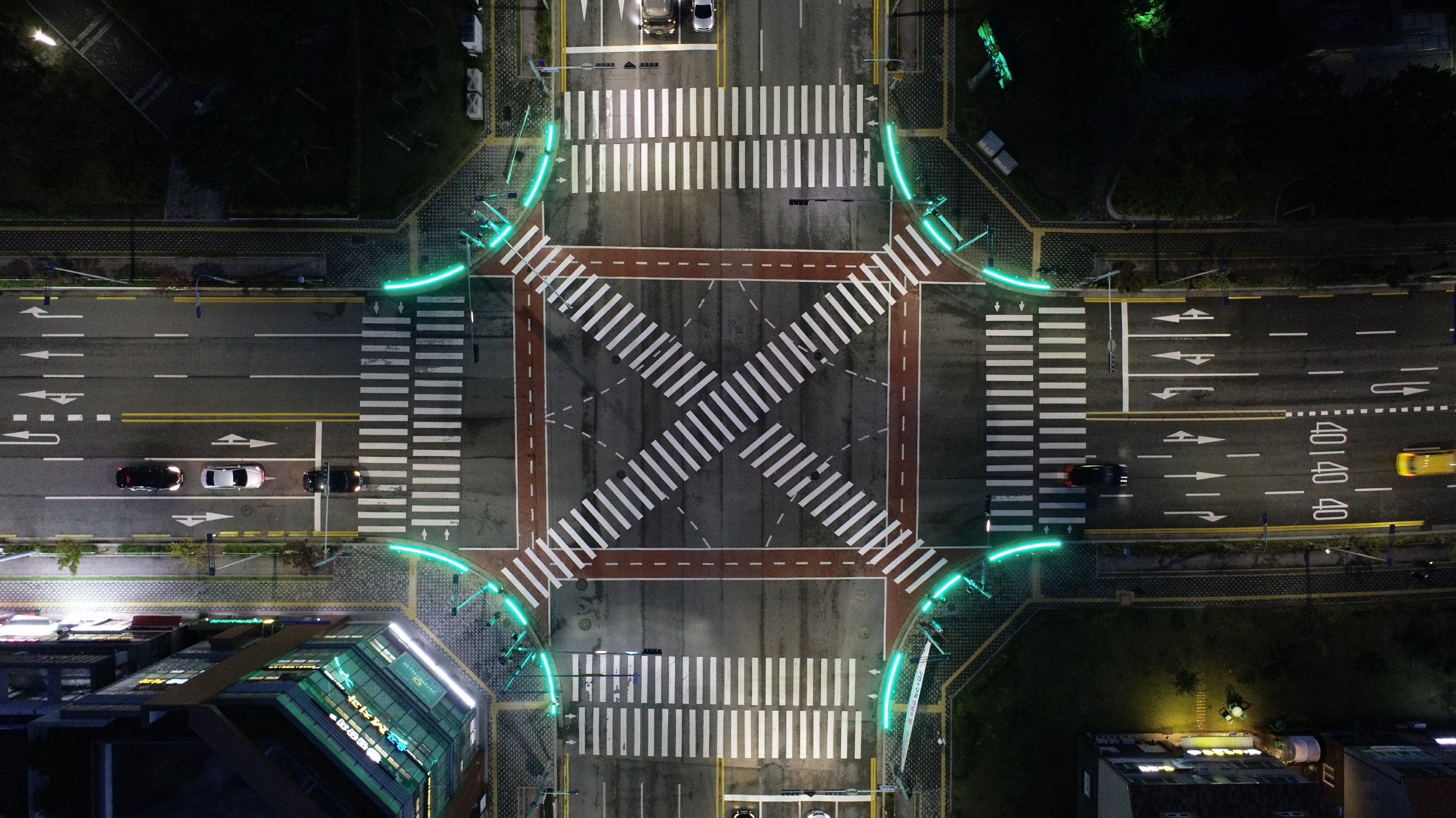 혁신농협 사거리에는 대각선 횡단보도와 바닥신호등을 설치 완료했으며, 율곡초 사거리에도 바닥신호등을 설치예정이다. 『대각선 횡단보도』는 보행전용 신호를 주어 보행자가 원하는 방향으로 한 번에 횡단할 수 있게 한 보행 친화적 교통시설이다. 보행자의 횡단 시간 단축으로 만족도가 크고, 교차로 내 전 차량 운행이 정지되어 횡단보도 내 교통사고가 예방되는 장점이 있다. 또한, 『바닥신호등』은 교통약자 뿐만 아니라 스마트폰을 보면서 주변을 살피지 않는 보행자(일명 스몸비)들의 교통사고 예방과, 보도가 아닌 차도로 나와 신호를 대기하는 보행자들의 안전을 확보하는데 효과적이다.