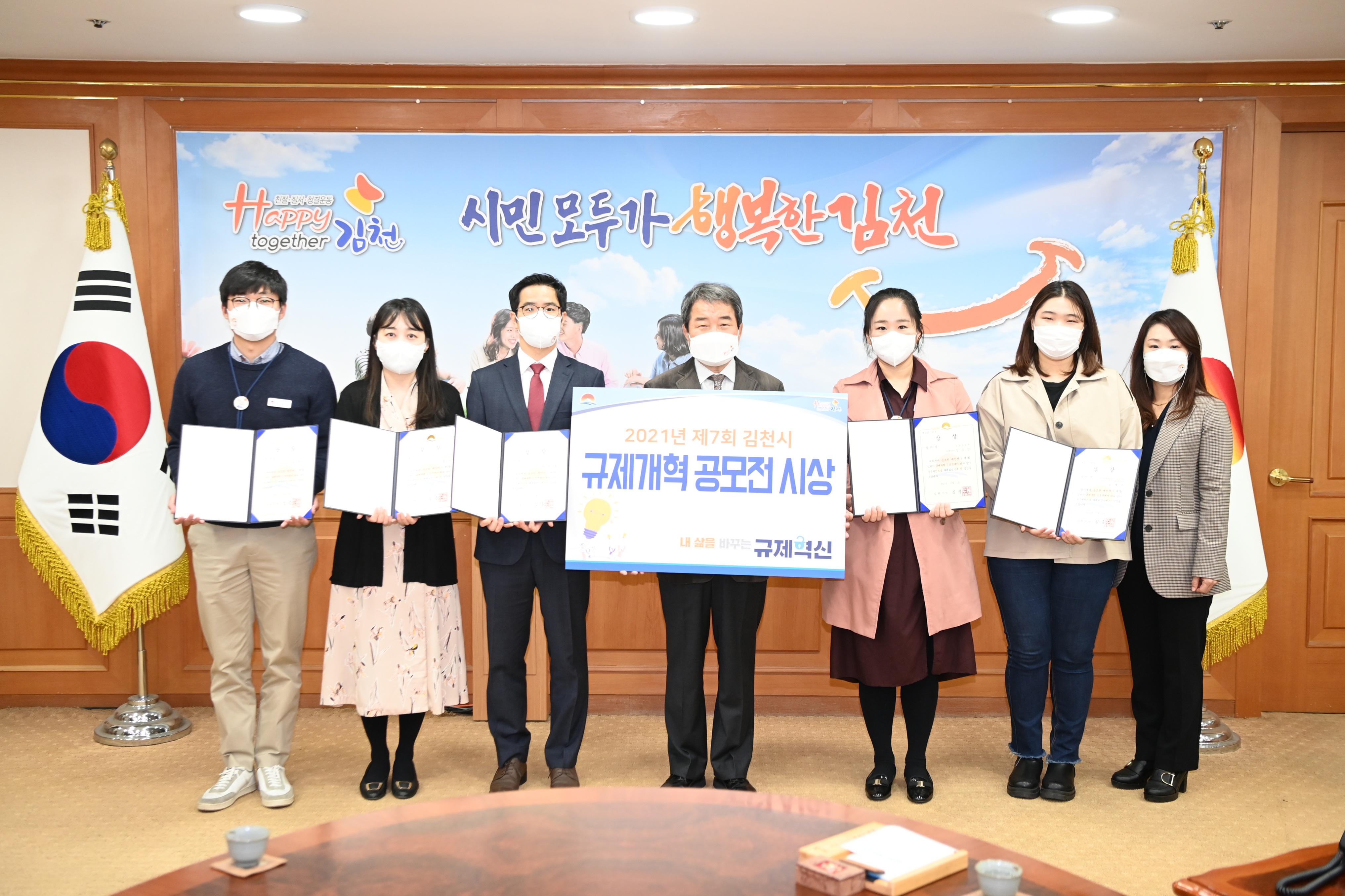 | 김천시(시장 김충섭)는 11월 2일 시청 접견실에서 ‘제7회 김천시 규제개혁 공모전’시상식을 가졌다.