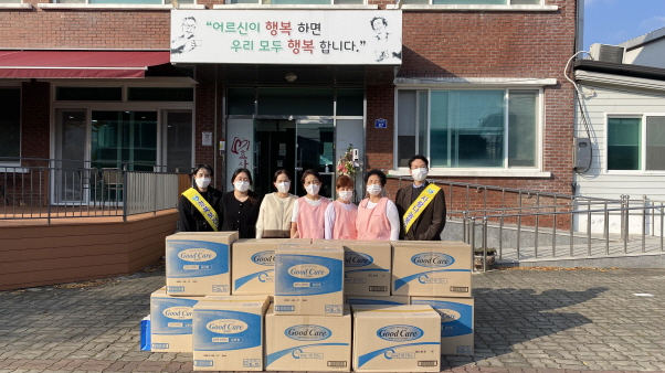 이날 봉사활동에는 사랑나눔 봉사단 단원 교직원 2명이 대표로 참여하였으며 코로나19 확산으로 특히 집단감염이 우려되는 요양원으로 기관 내 봉사활동이 어려운 상황에서 작은 정성이지만, 지역사회에 도움이 되고자 하는 마음을 담아 노인용품을 전달했다.