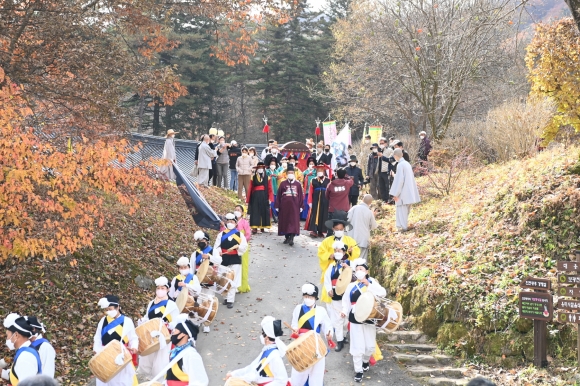 | 고찰의 신비로움을 고이 간직한 유서 깊은 김천시 청암사에서 11월 7일 '인현왕후 복위식' 행사가 성대하게 재현되었다.