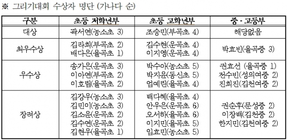 한편, 상장과 부상은 각 학교로 전달되며 수상작품은 공공기관 전시회, 에코백 프린팅, 시정 홍보 스티커 등으로 활용될 예정이다.