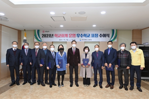 | 경북교육청(교육감 임종식)은 12일 302회의실에서 2021학년도 학교회계 운영 우수학교에 대한 교육감 표창을 수여했다.