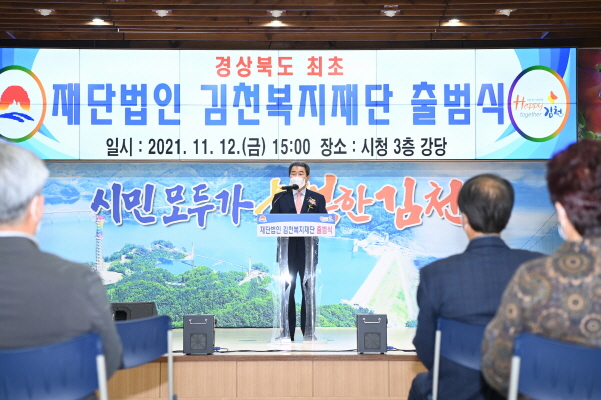 이날 출범식에는 김충섭 이사장, 이우청 시의회 의장, 복지재단 임원을 비롯해 재단 설립 관계자 80여명이 참석했다. 코로나19 방역수칙을 준수하며 축하공연, 경과보고, 출범선포 및 출범사, 축사, 축하떡 커팅 및 현판 제막식 등으로 진행했다.