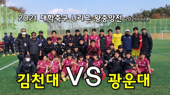 | 김천대학교(총장 윤옥현) 축구부(감독 이창우)는 대학 최강팀을 가리는 2021 대학축구 U리그 왕중왕전 16강 경기(11월 14일)에서 전통의 강호 광운대학교를 승부차기까지 가는 혈투 끝에 승리, 8강에 안착했다.