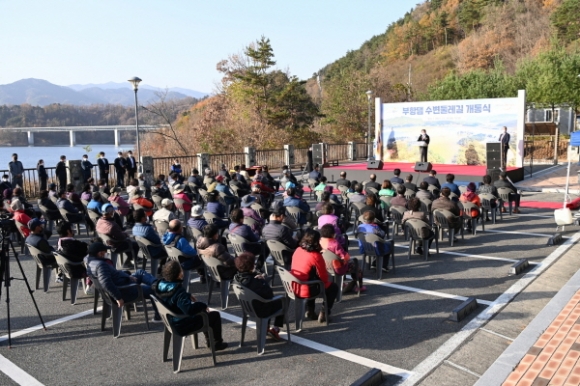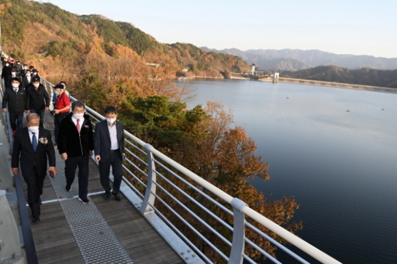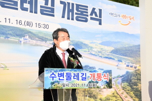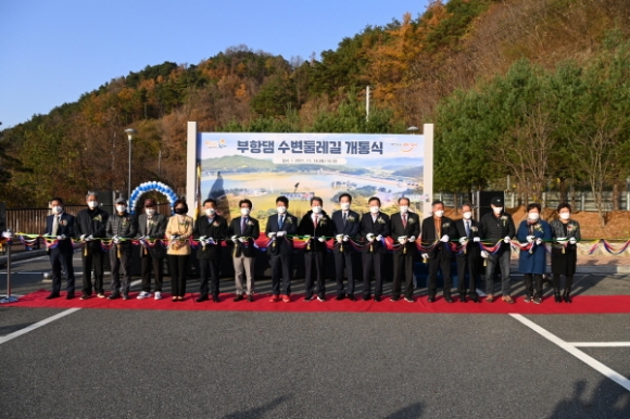 |  | | | ⓒ 김천내일신문 | 김천시는 지난11월16일 김천부항댐 물문화관 주차장에서 김충섭 김천시장, 나영민 시의회 부의장, 관내 기관단체장 및 지역주민이 참석한 가운데‘부항댐 수변둘레길 개통식’행사를 가졌다.