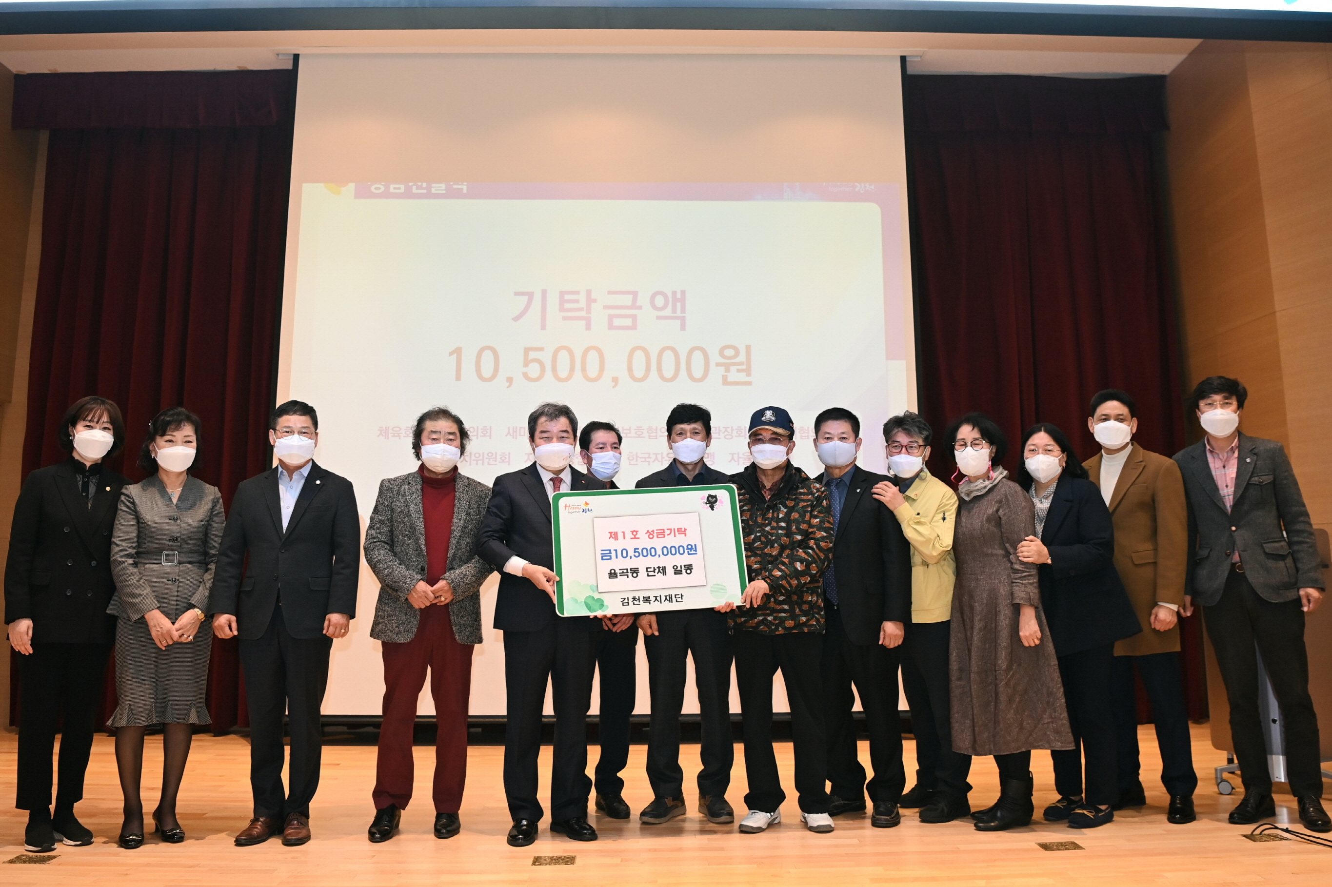 | 김천시 율곡동 체육회 외 9개 단체는 김천복지재단 성금 제1호로 1,050만원을 기부했다.