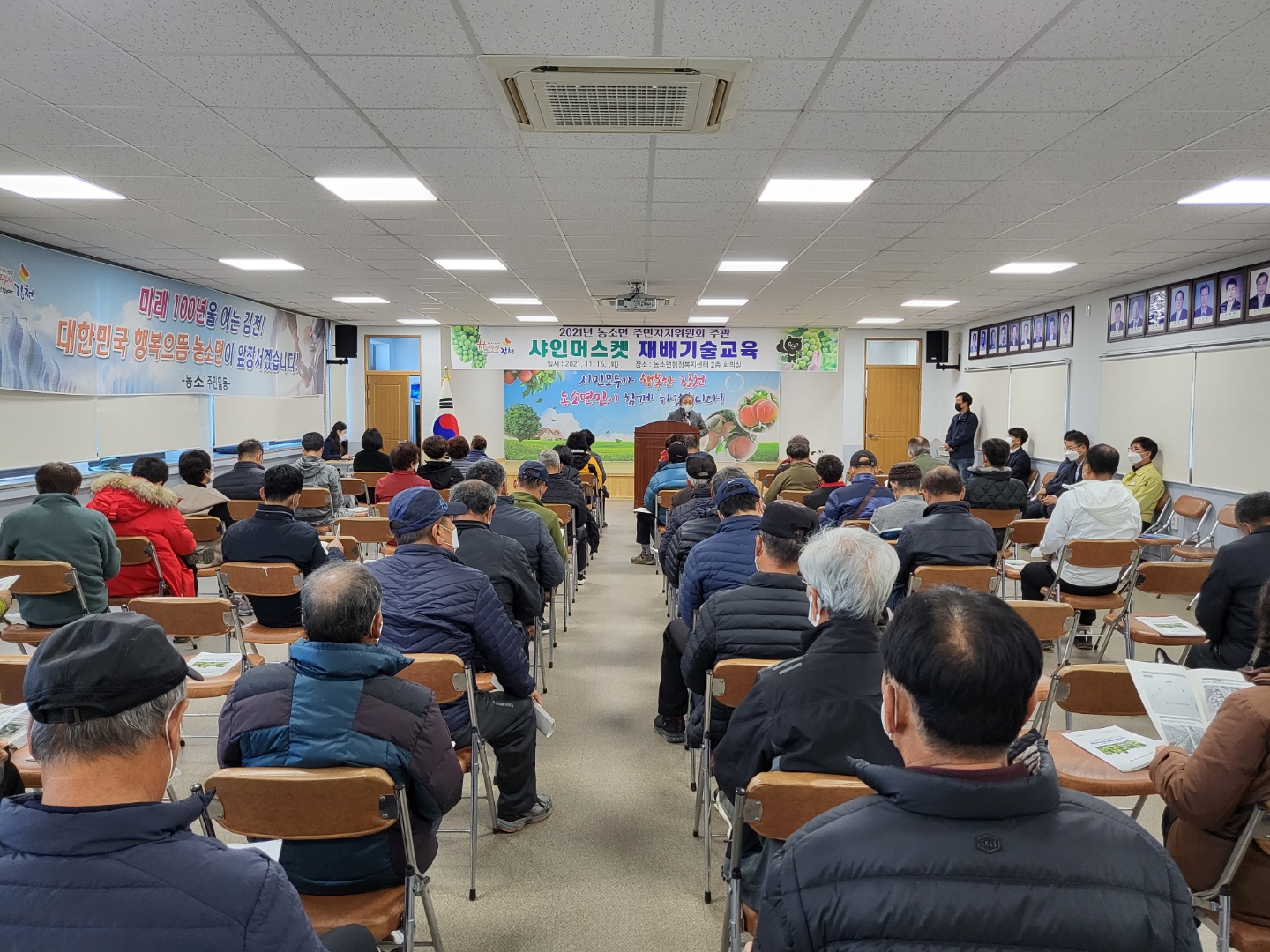 | 농소면 주민자치위원회(위원장 안종복)에서는 11월 16일(화) 행정복지센터 2층 회의실에서 샤인머스켓 포도 재배기술 교육과 관련한 전문 실용교육을 실시했다. 교육신청 당일부터 전화문의가 쇄도할 만큼 높은 인기를 자랑했다.