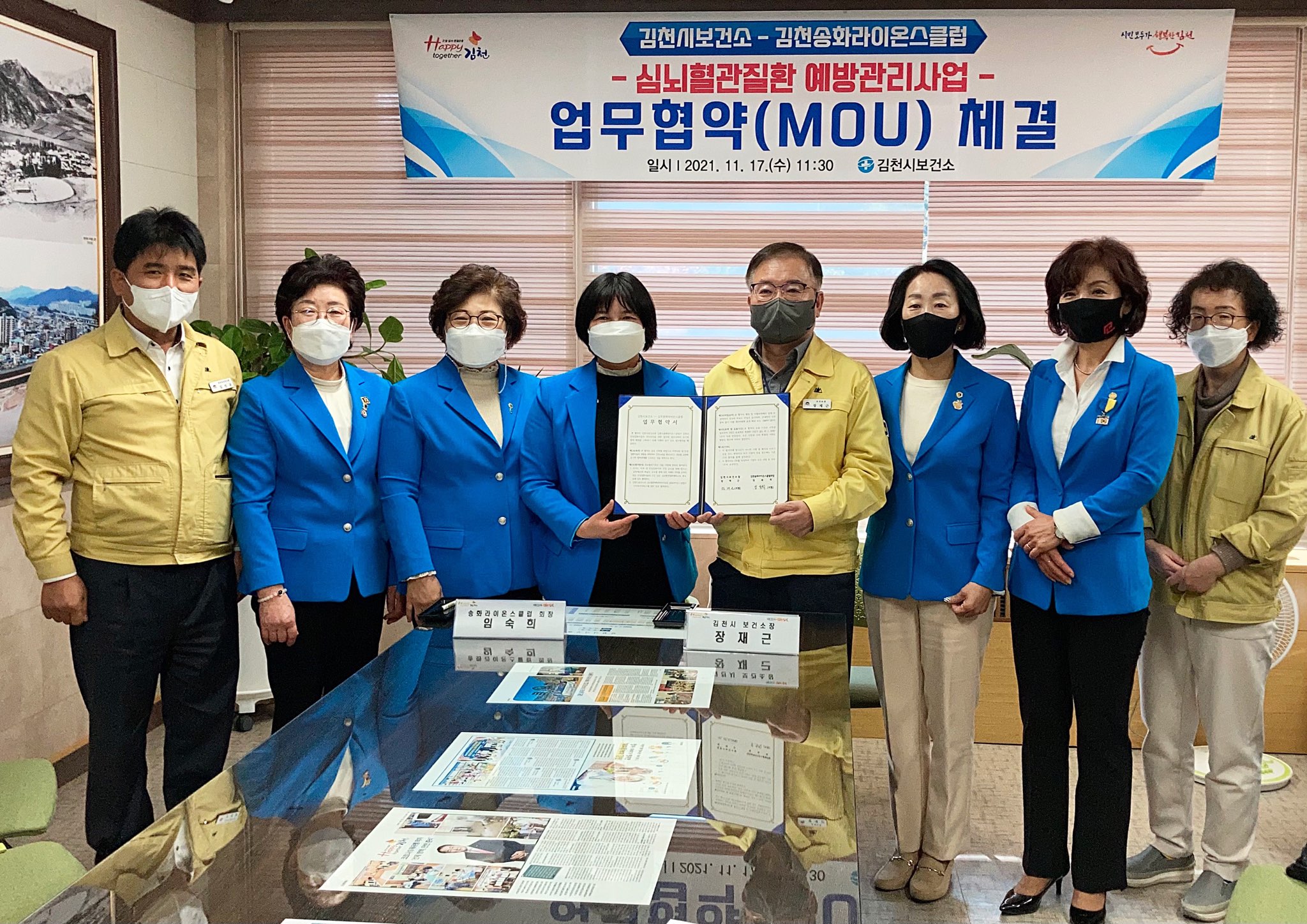 | 김천시보건소는 11월 17일 송화라이온스클럽과 심뇌혈관질환예방관리를 위한 업무협약을 체결했다고 밝혔다.