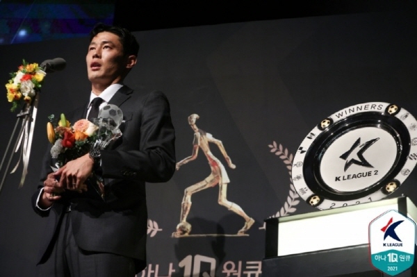 안병준은 18일 서울 마포구 누리꿈스퀘어에서 열린 2021시즌 하나원큐 K리그2 대상 시상식에서 최우수선수(MVP)로 선정됐다.