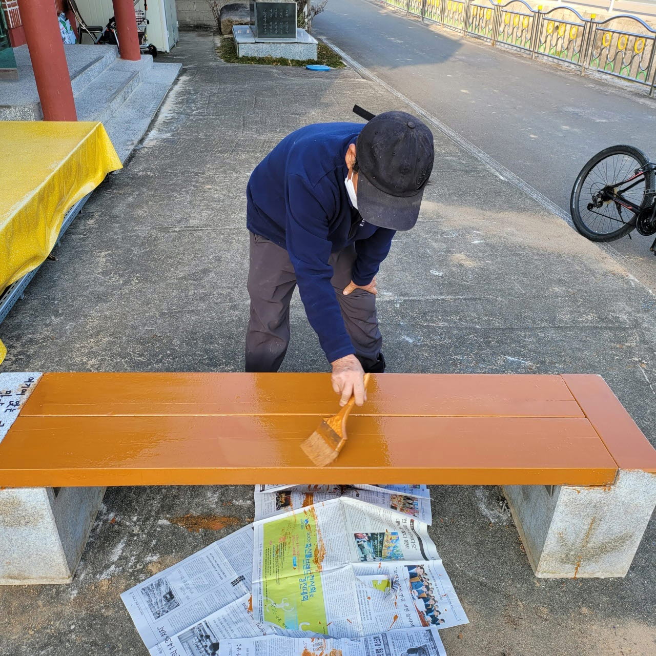 조마면 삼산리 문용한 이장 노후 벤치 페인트 작업 실시