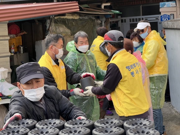 | 김천시 민간 봉사단체인 김천행복투게더 봉사대는 저소득층들에게 따뜻한 겨울을 선물하기 위해 지난 20일 아침 일찍 연탄봉사에 나섰다.