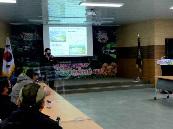 또한 교육 전에는 2021 김천시 주요 시정을 설명하는 홍보물을 면장이 설명하여 우리시의 발전되고 있는 모습을 감시원들이 알 수 있도록 했다.