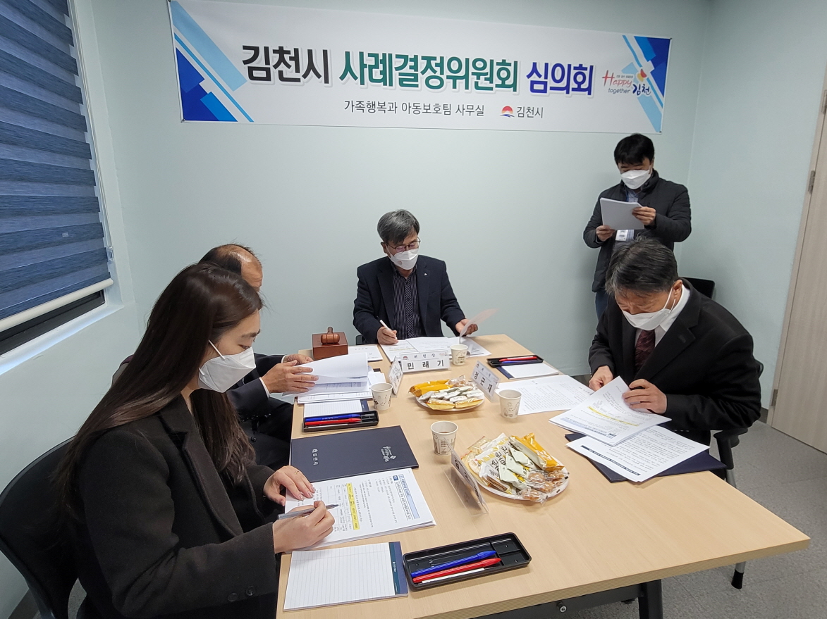 | 김천시는 지난 11월 23일(화) 가족행복과 아동보호팀 사무실에서 아동양육시설과 가정위탁의 보호대상아동의 보호조치에 관한 상황을 심의하는「사례결정위원회 심의회」를 개최했다.