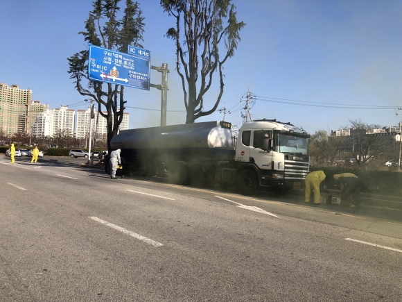 이번 훈련은 구미, 칠곡 및 경주 등 산업단지 내 주요 상습 결빙지역에서 동절기에 발생할 수 있는 ‘빙판길 유해화학물질 탱크로리 전복사고’ 상황을 가정하여 불시에 진행하였으며,