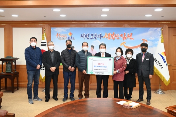 | 지난 25일 남면 새마을남녀협의회(김덕수, 나계월 새마을남녀협의회장) 회원들은 김천복지재단에 100만원을 기부했다.