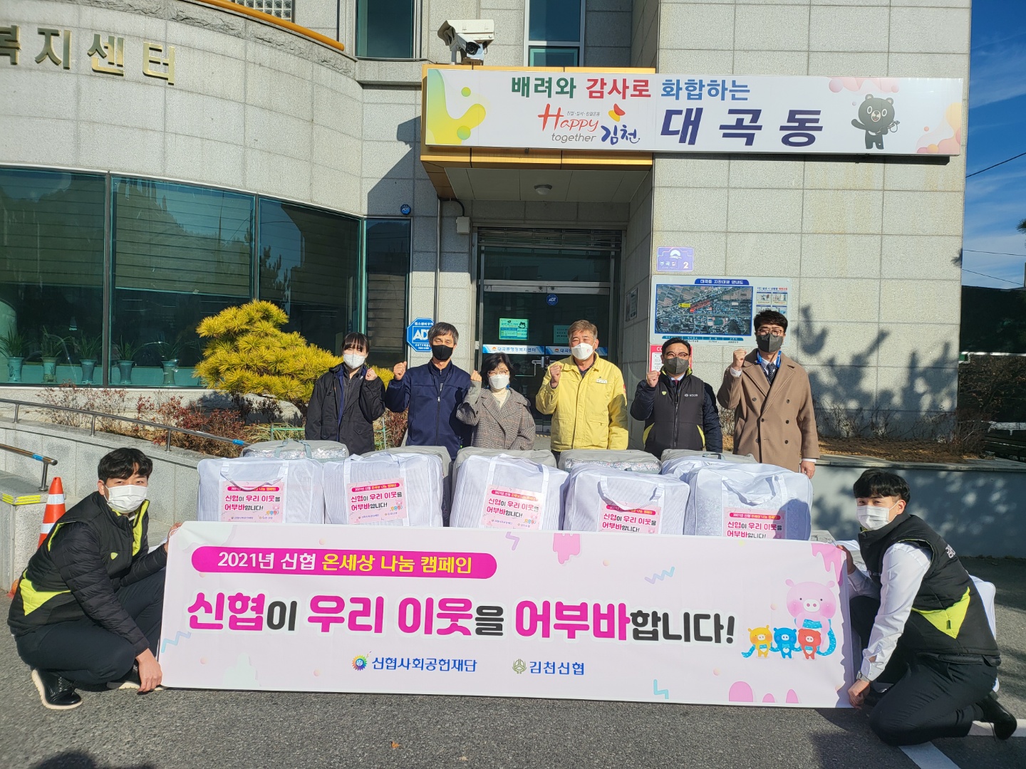 이번 후원은 김천신협이 추진하고 있는‘온(溫)세상 나눔캠페인’의 일환으로 기부된 이불은 독거노인, 한부모가구 등 대곡동 관내 취약계층의 따뜻한 겨울나기를 위해 전달될 예정이다.