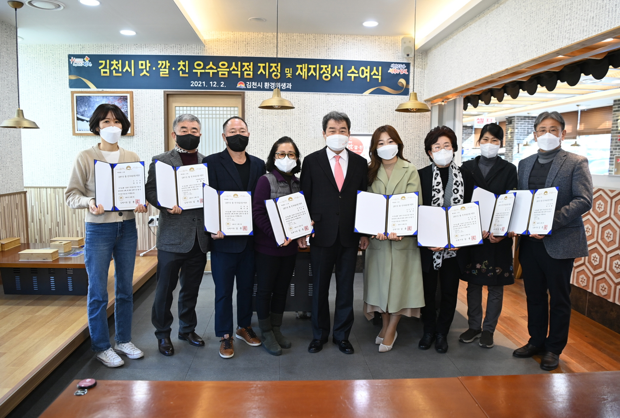 김천시 맛․깔․친 우수음식점 지정 및 재지정서 수여