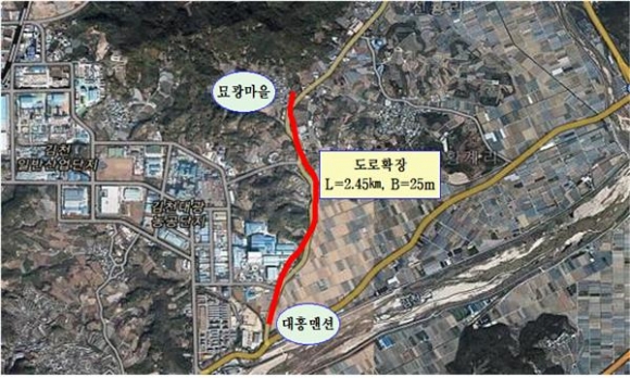 이에 송언석 의원은 행정안전부를 적극 설득하여 대홍맨션부터 묘광마을까지의 국도 59호선을 확장하면서 강남북 연결도로 개설을 통해 교통량 분산과 교통사고 예방을 위한 사업 예산 5억원을 특별교부세로 확보했다.
