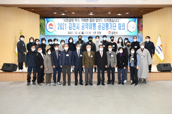 | 김천시는 12월 6일『공약이행 공감평가단』1차 회의를 갖고, 시민과의 소통을 기반으로 하는 공약이행 평가와 검증 단계에 돌입했다. 공약이행 공감평가단 회의는 공약추진현황을 있는 그대로 시민에게 공개하고, 객관적으로 평가받기 위해 김천시가 매년 구성하여 운영해오고 있는 시민토론회다.