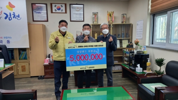 임동환 대곡동장은 “코로나 19로 힘든 시기에 어려운 이웃들을 위해 힘쓰는 KT&G김천공장에 감사드리며, 기탁해주신 기금은 도움이 필요한 지역 이웃에 의미 있게 사용될 수 있도록 하겠다.”고 밝혔다.