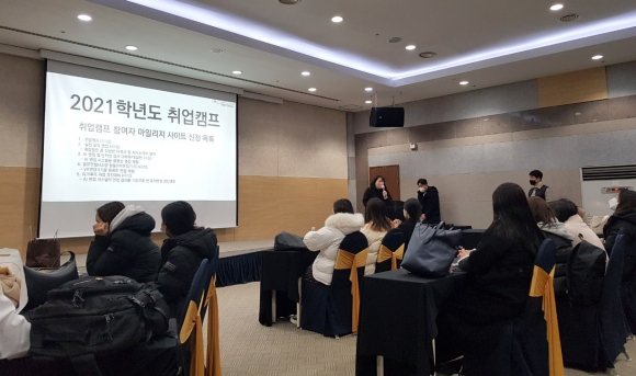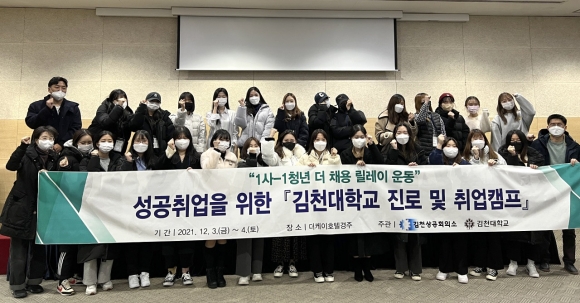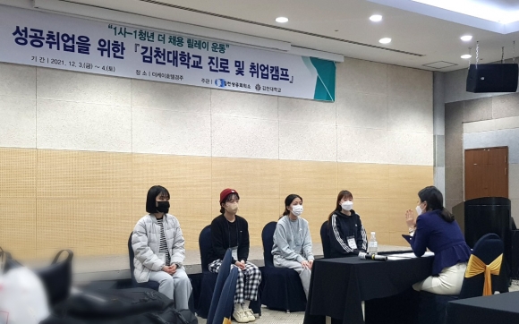 | 지난 12월 3일부터 12월 4일 1박 2일 동안 김천대학교(총장 윤옥현) 유아교육과에서는 예비유치원교사를 위한 학년별 맞춤형 취업캠프를 경주 더케이 호텔에서 실시하였다. 이번 취업캠프는 4학년 학생들은 이력서, 자기소개서 작성, 모의 면접, 면접 이미지 메이킹, AI 모의 면접을 진행하였으며, 이외의 학년들은 진로 로드맵, 퍼스널 이미지, AI 모의 면접 등의 다양한 맞춤형 프로그램을 실시하였다.
