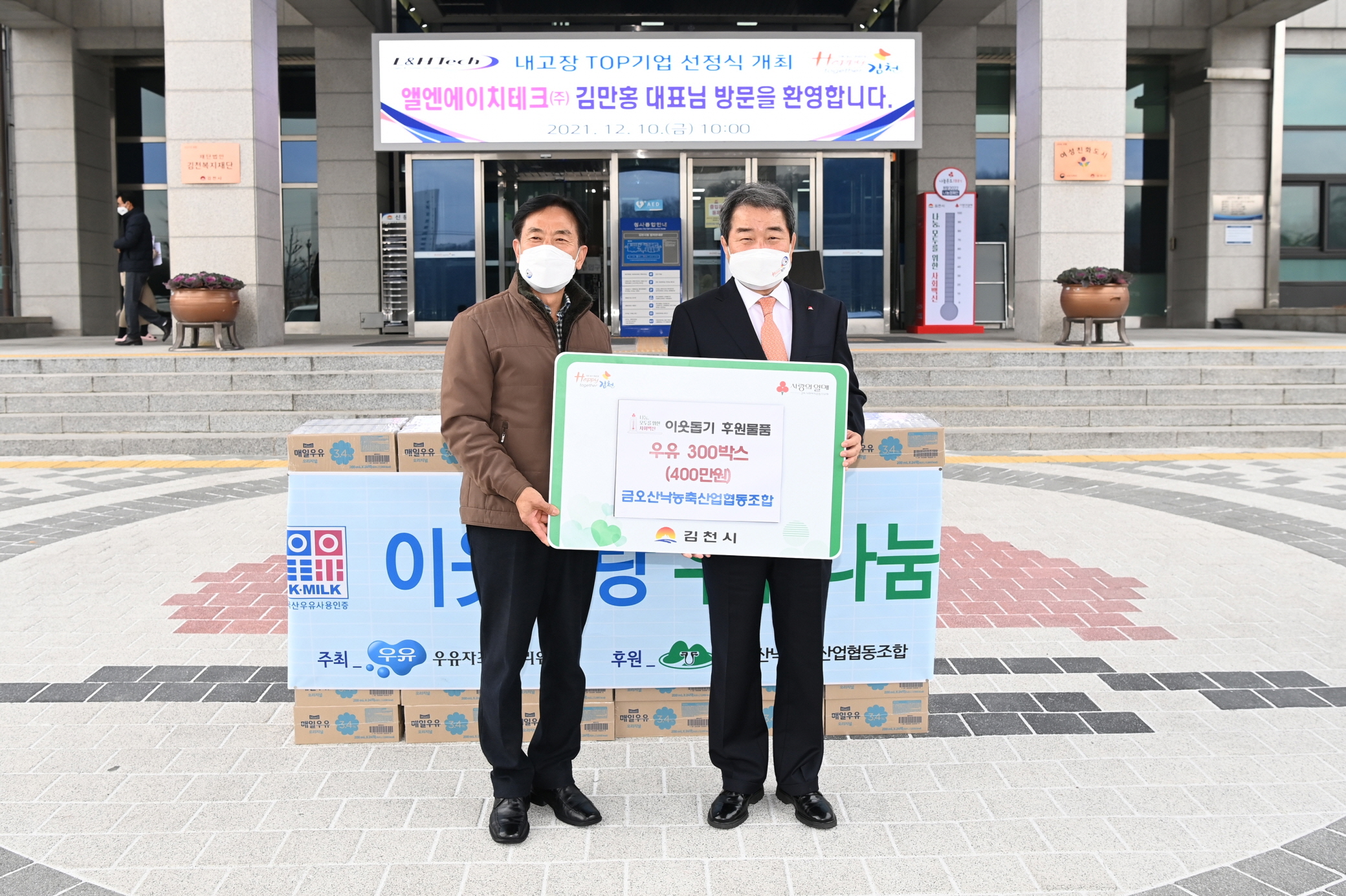 전달행사에 앞서 가진 간담회에서 금오산낙협 조명식조합장은 “낙농가를 대표해 김천시의 낙농업에 대한 관심과 지원에 감사드린다.”며 “2년여 이상 장기화 되고 있는 코로나 19로 인해 올 겨울은 소외계층이 더 힘든 상황이지만 미력이나마 지역의 어려운 분들에게 도움이 되었으면 하는 마음으로 물품 후원을 하게 되었다.”고 전했다.