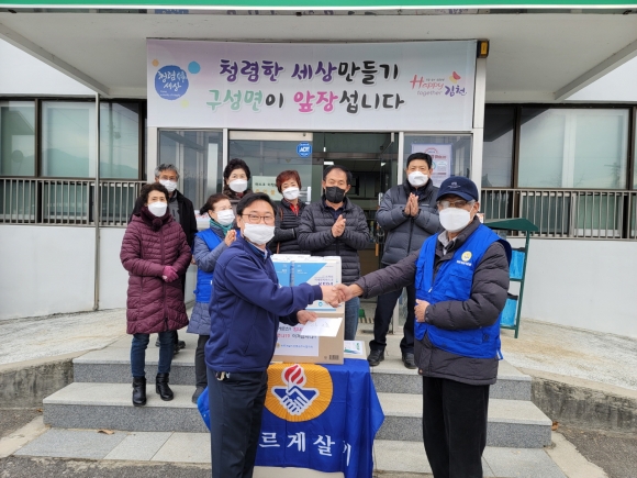 | 김천시 구성면 바르게살기 협의회(위원장 이종달)에서 기부금 및 KF94 비말차단 마스크를 구성면 행정복지센터에 기탁했다.