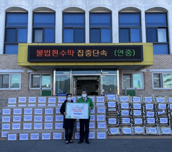| 대도중공업(주)(대표이사 장락기ㆍ백계자)은 지난 13일 연말을 맞아 소외되고 어려운 이웃을 위해 쌀 10kg 90포대, 라면 90박스(500만원 상당)를 농소면에 전달했다.
