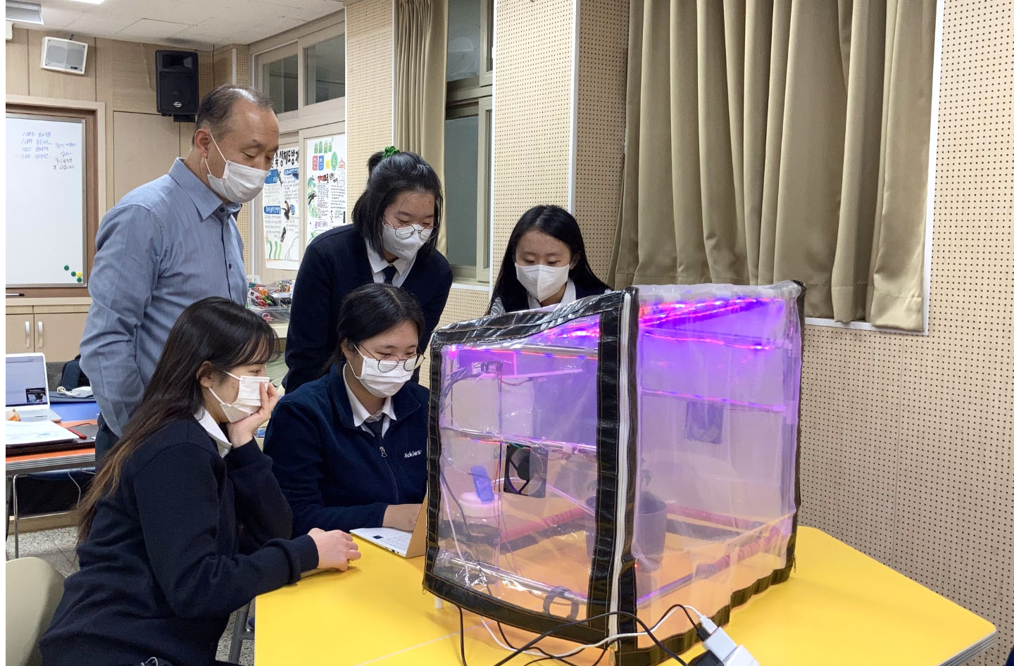 김용준 교수는 지난 5월부터 11월까지 6개월여 간에 걸쳐 “머신러닝을 이용한 스마트팜 환경예측 시스템의 개발”이라는 주제로 학생들을 지도했다. 미니 스마트팜을 제작하고 데이터를 수집하여 학습하는 과정을 지도하였고 딸기 명인 농장의 데이터를 직접 수집하여 학습하고 예측 결과를 비교, 적용할 수 있도록 하였다.