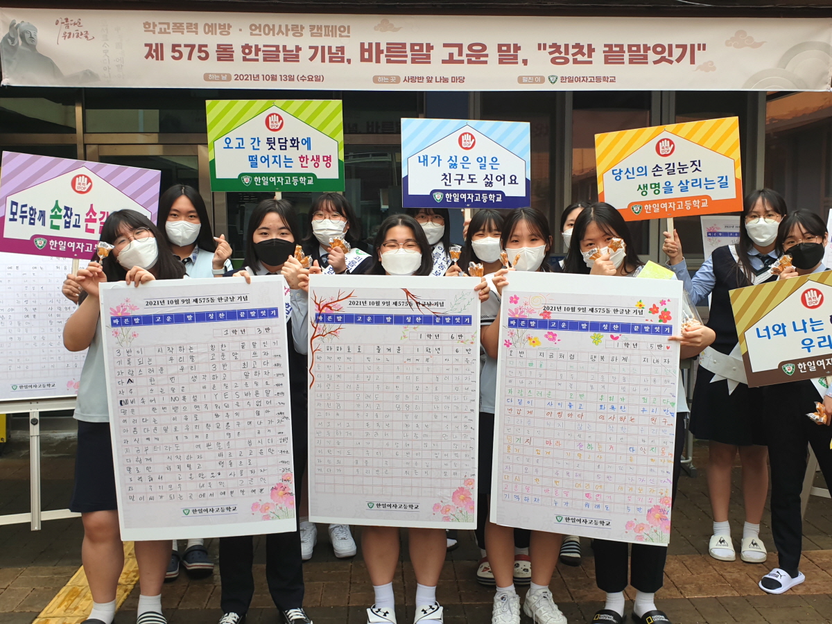 | 한일여자고등학교(교장 이자명)는 지난 12월 10일 (금), ‘언어문화 개선 및 학교폭력 예방 우수학교’로 선정되어 우수 기관 및 우수 교원 표창을 받았다.