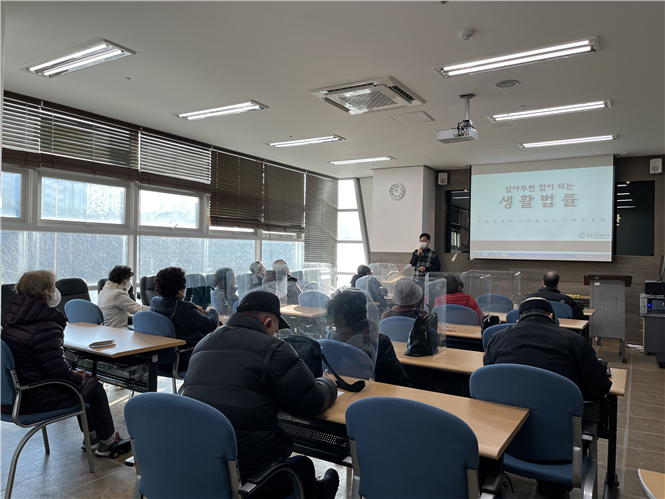 이번 찾아가는 법문화교육은 구립 신내노인종합복지관과 연계하여 진행되었으며 코로나 19 방역수칙에 따라 2차 접종완료 및 손소독·체온체크를 철저히 준수하는 가운데 진행됐다.