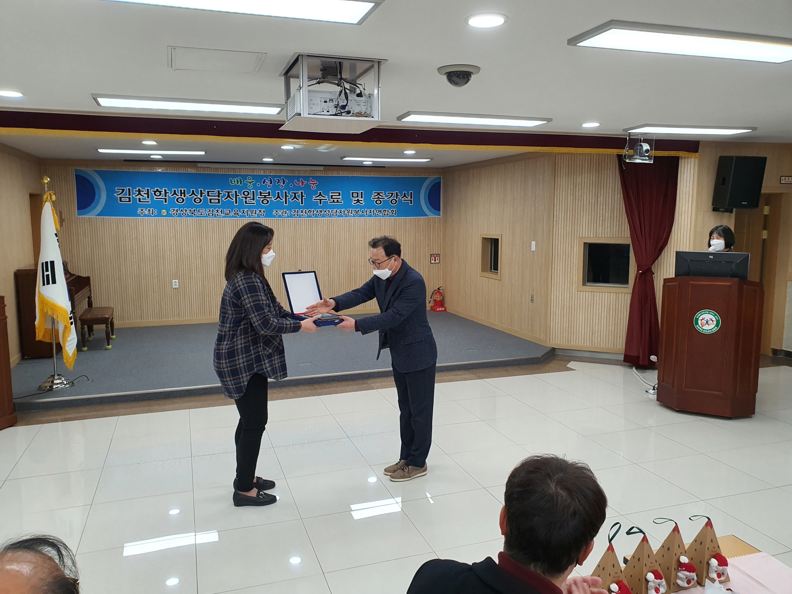 김천교육지원청 박삼봉 교육장은 “코로나로 인해 힘든 시기임에도 불구하고 보이지 않는 곳에서 묵묵히 봉사를 진행한 학생상담자원봉사자들의 노고에 감사드리며, 내년에도 관내 학생들의 건강한 성장을 위해 노력해 주길 바란다.”고 하였다.
