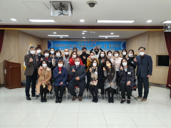 | 경상북도김천교육지원청(교육장 박삼봉) Wee센터는 12월 17일(금) 김천교육지원청 3층 대회의실에서 학생상담자원봉사자 및 교육지원청 관계자 등 25명이 참석한 가운데 2021학년도 학생상담자원봉사자 김천지역연합회 종강식을 가졌다.