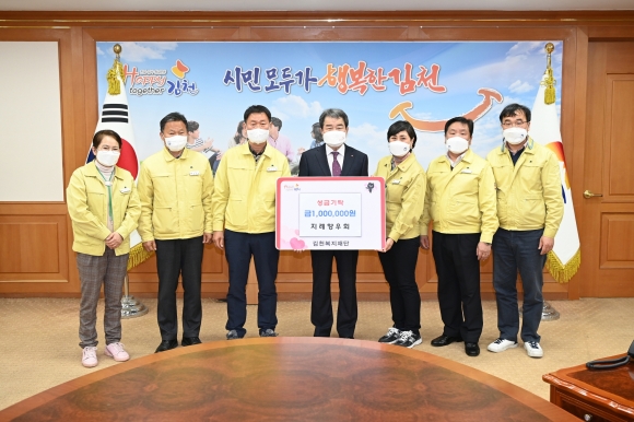 | 김천시청 지례향우회(회장 : 김천석) 은 지난 17일 김천복지재단에 성금 일백만 원을 기탁했다. 지례 출신의 공무원 21명의 회원으로 구성된 지례향우회는 2년여 간 코로나19로 어려움을 겪고 있는 불우이웃을 돕고 복지재단이 경북 최초로 출범됨에 따라 기부하게 됐다고 밝혔다.