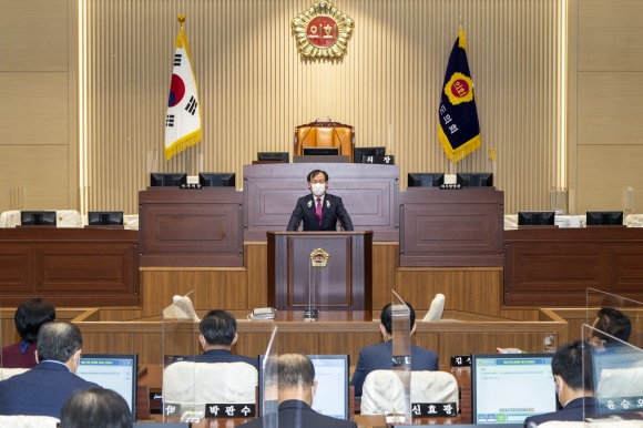 고우현 의장은 먼저 송년사를 통해 “코로나19와 경기침체로 인해 모두가 힘들었던 한해였지만, 다가올 새해에는 도민과 더불어 의회와 집행부가 함께하여 일상회복의 물꼬를 트는 한해가 되도록 하겠다”고 밝혔다.