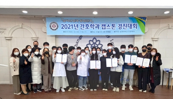| 김천대학교(총장 윤옥현) 취·창업 지원사업으로 개최된 간호학과 캡스톤디자인 경진대회 시상식이 지난 17일 김천대학교 엔젤홀에서 있었다.