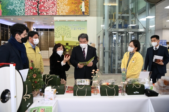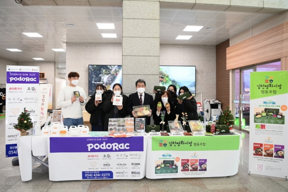 | 김천시에서는 전통시장과 지역경제 활성화를 위해 12월 20일~21일 시청 1층 로비에서 김천평화시장 협동조합에서 개발한 상품과 평화시장 청년몰 제품 품평회를 개최했다.