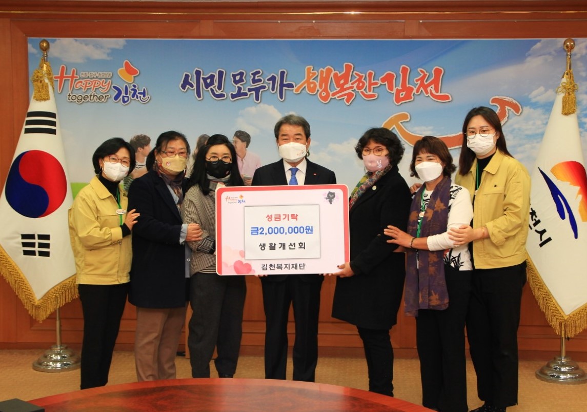 | 한국생활개선김천시연합회(회장 김지현)에서는 지난 12월 20일 이웃사랑 마음을 담은 성금 200만원을 「김천복지재단」에 전달했다.